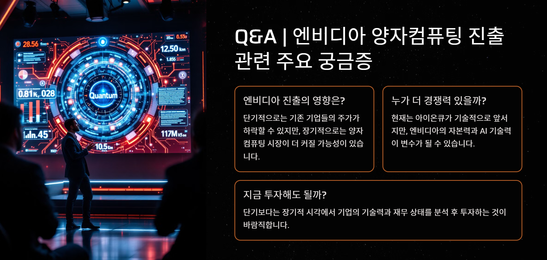 A. 현재로서는 아이온큐가 기술적으로 앞서 있지만, 엔비디아의 자본력과 AI 기술력이 변수가 될 수 있다.