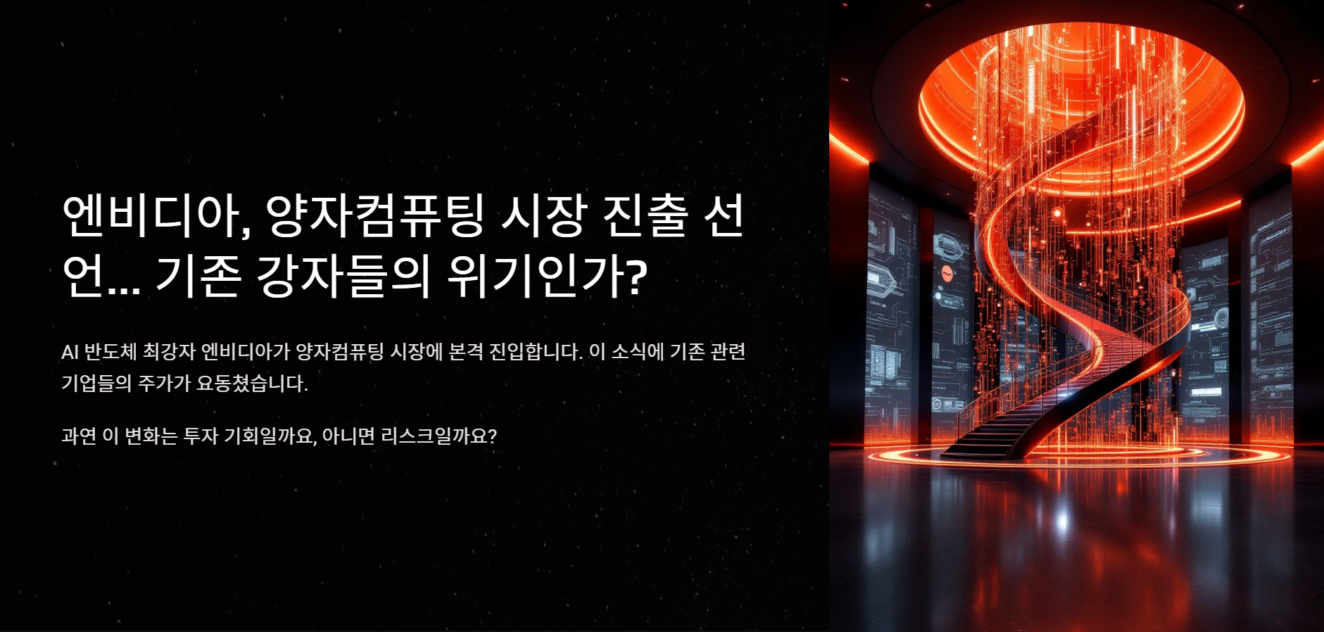 AI 반도체 최강자 엔비디아가 양자컴퓨팅 시장에 본격 진입한다. 이 소식에 기존 관련 기업들의 주가가 요동쳤다. 과연 이 변화는 투자 기회일까, 아니면 리스크일까?